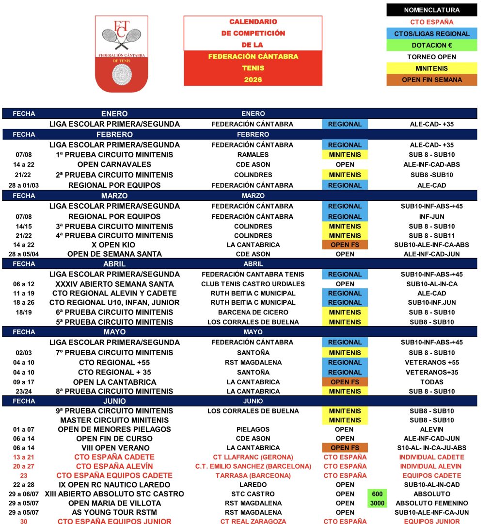 Los torneos sociales a pesar de ser oficiales, no aparecen en el calendario para evitar confusiones con los Open.