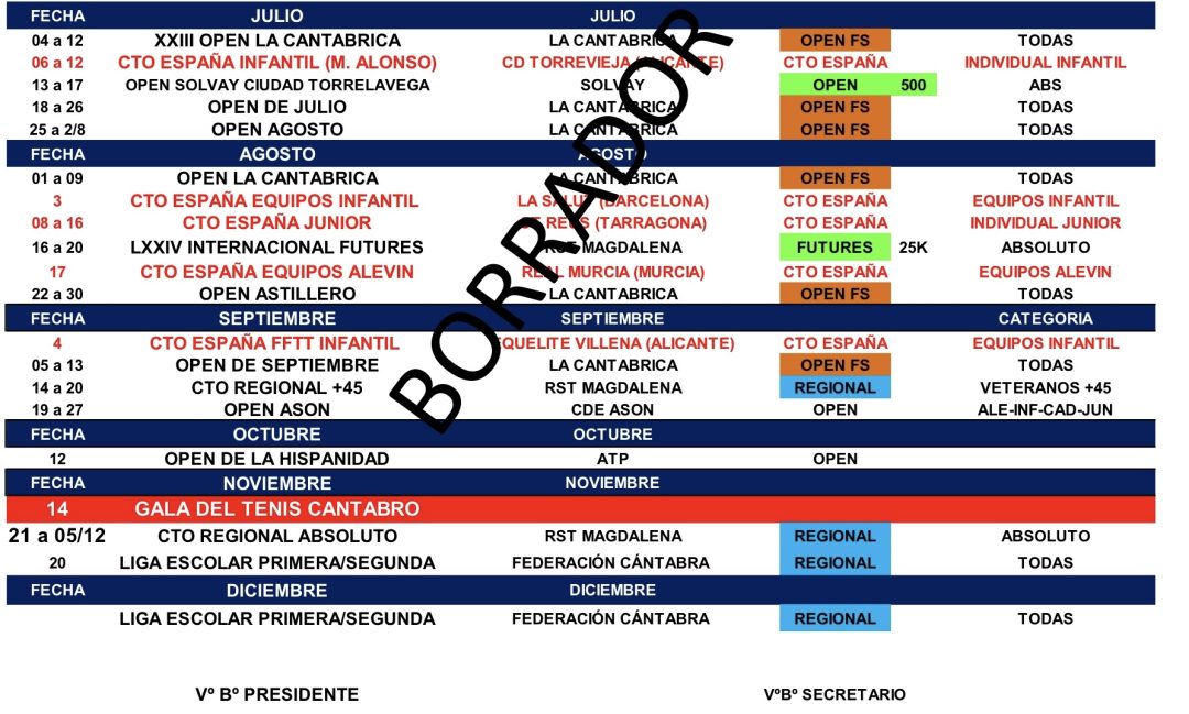 Los torneos sociales a pesar de ser oficiales, no aparecen en el calendario para evitar confusiones con los Open.