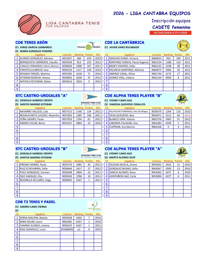 • Cto. Cantabria por equipos 2025